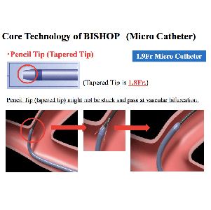 Pencil Tip (tapered tip) might not be stuck and pass at vascular bifurcation. Softness and maintains inner lumen patency. Stability of delivering embolization materials. Prevent distal tip from being stuck at vascular bifurcation.